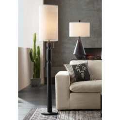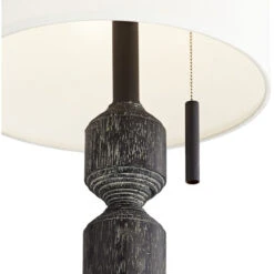 The Adelis Floor Lamp from Pacific Coast Lighting is part of Slumberland’s collection of stand-alone lighting fixtures meant for larger living spaces. This eclectic piece is comprised of poly-resin wood textured makeup with a black ceruse finish to add to its modern flare. The linen shade included is a soft white color, and additional geometric details can be found along the Adelis Floor Lamp’s base leading up its shaft to the pull-down switch, which also features a wooden handle on the pull-down chain. This large fixture stands at 68” tall and has a diameter of just 12”. Come see the Adelis Floor Lamp in person today at your nearest Slumberland showroom, or shop other large food lamp options from Pacific Coast Lighting online today.