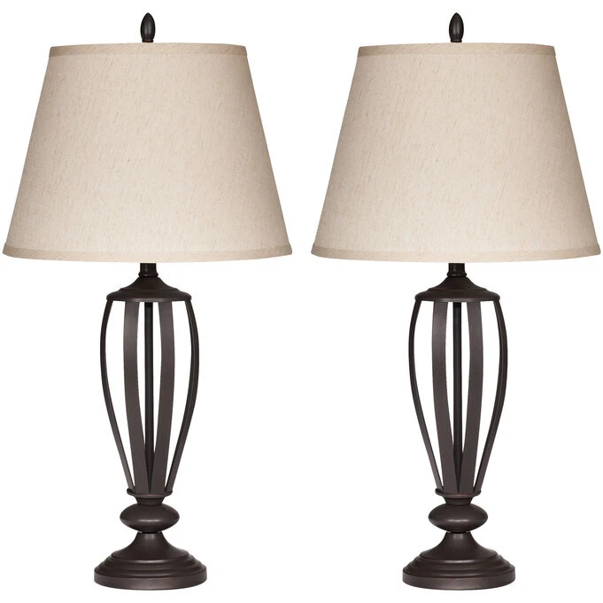 This set of 2 Ashland table lamps is an excellent choice for adding function and fashion to your living space. Place them on each end of your sofa or sectional, or separate and station them wherever you need light. The versatile styling means these metal table lamps will complement almost any dΓ©cor. Made of steel, they have a handsome burnished finish, fabric shades, and a convenient, extra-long cord. Three-way switch.