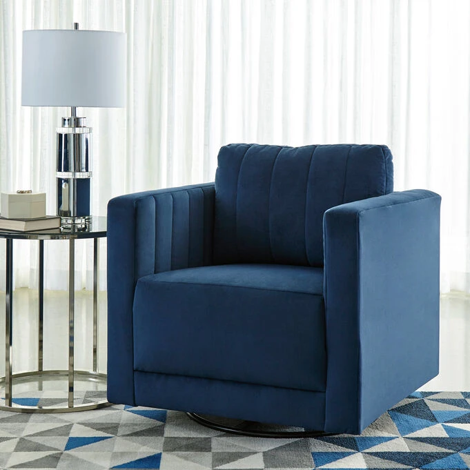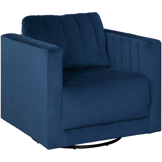 A brilliant take on urban chic styling, this swivel chair in vibrant blue makes high design highly affordable. Distinctive elements include quilted channel stitching for clean-lined allure and a velvety soft fabric you’ll love living with. Sleek track arms and a smooth 360-degree swivel up the wow factor. – Product Details provided by Manufacturer, Slumberland not responsible for errors in information.