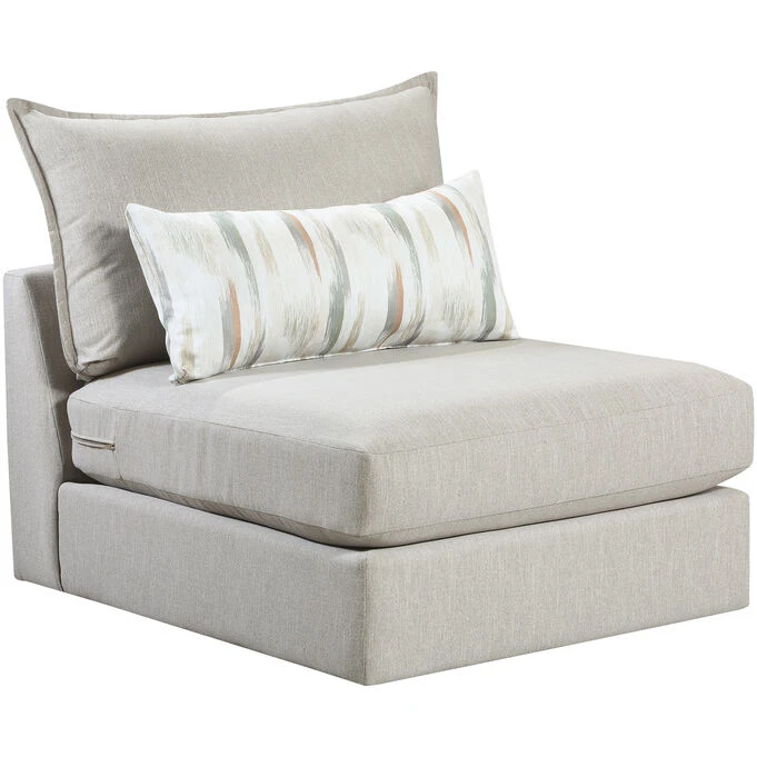 The perfect spot for cozy relaxation, the Floza Armless Chair offers plenty of room to sprawl out and a comfy space to curl up. Clean-lined design, spacious profile and plush comfort make an attractive and chic statement in any home. It features fully upholstered back and arms, hardwood construction and recycled fiberfill. The Floza Armless Chair comes with a bagged and zippered lumbar pillow, plush seating and a tailored base, making this armless chair perfect for the family room, living room or game room. The Floza Armless Chair entices you to sit and stay a while in its comfortable contours.