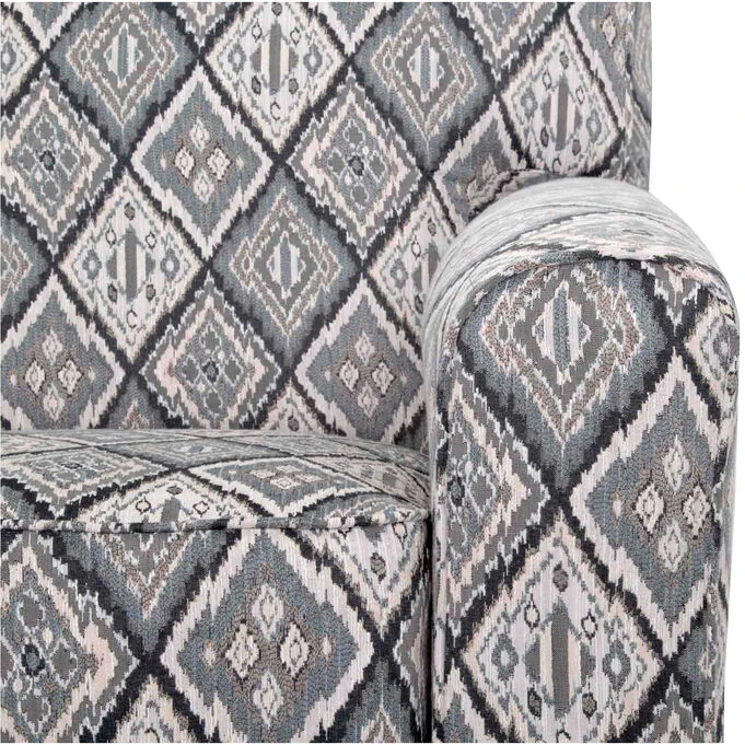No matter if you want to relax in a cozy corner or upgrade your interior design, the Foster Accent Chair is an ideal addition to any space in your home. Built with a premium plywood frame, this accent chair comes with contemporary rounded track arms and plush gel-injected seating, so that it feels as good as it looks when you sit in it. A chair with sophisticated flair, it blends seamlessly into traditional décor. Its tight plush, comfortable seat, elegant style, and lovely multi-colored, geometric patterned fabric upholstery is a welcome addition to any home. You’ll love adding the Foster Accent Chair to your living space.