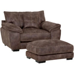 The Monza chair is really a chair and a half. Bigger than an average chair and smaller than a loveseat, itโs the perfect place to snuggle with a loved one or a pet. Or just lay back and relax in your own personal space. Upholstered in a soft fabric with the look of weathered leather, this is the perfect chair for your family room or casual living room. This chair utilizes mortise and tenon joints, creating the strongest frames in the industry. The back and seat cushions are accented with luggage topstitching – plus theyโre reversible for twice the wear.