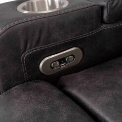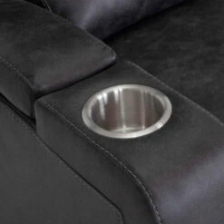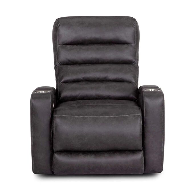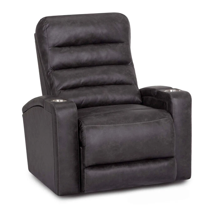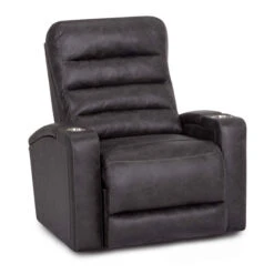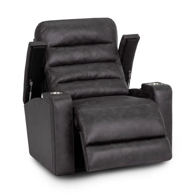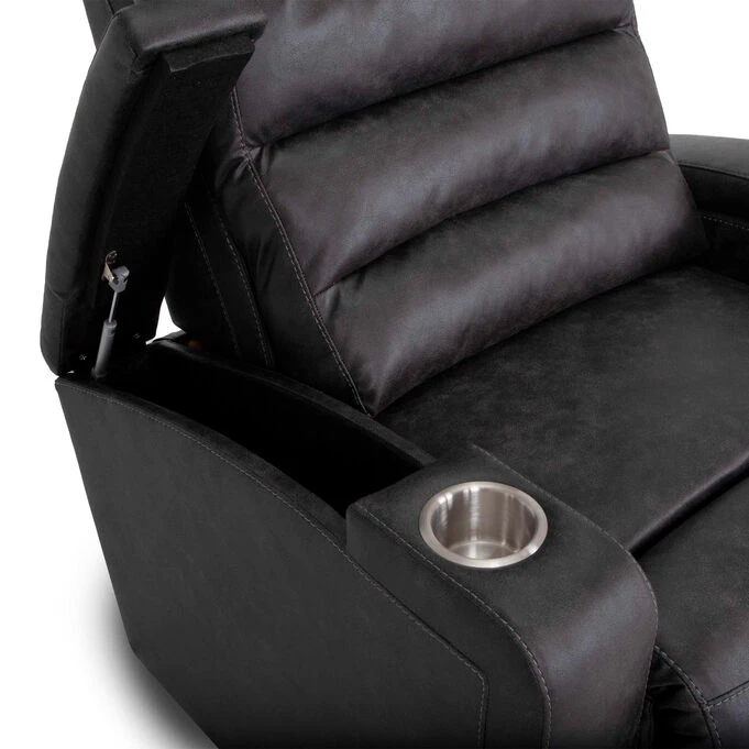 This comfortable recliner has all the awesome features of a Home Theater Recliner. The power adjustable headrest and reclining controls allow effortless customization to find your perfect position. The chair arms include a built-in space for storing books, magazines, mobile devices, and other accessories. The cupholders make it easy for you to access your beverages during those movie marathons. Cool Bonus: the arms remain stationary as the chair reclines, allowing side-by-side stacking!