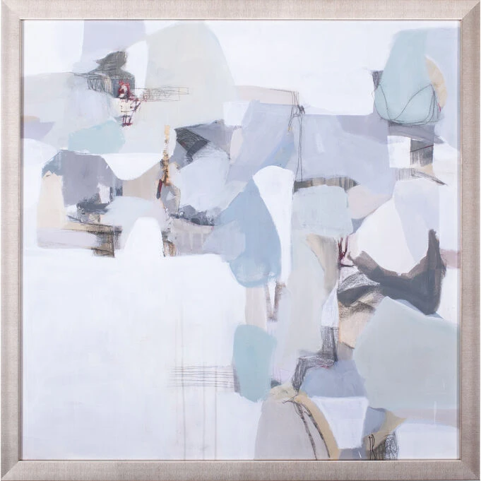 This “Glacier” wall art by artist Terri Burris is an abstract piece taken from the Catalog Collection by Art Effects. This contemporary and vibrant item is sold ready to hang, and comes placed within a quality resin frame built with sound construction and a light brown finish. Measuring an even 39” x 39”, the large wall décor is comprised of shades of gray and silver, allowing it to fit nicely in any modern, neutral-colored space. Shop this fresh design and other large abstract pieces from Art Effects at Slumberland online, or visit your nearest location to view more items from Art Effects’ Catalog Collection in person.
