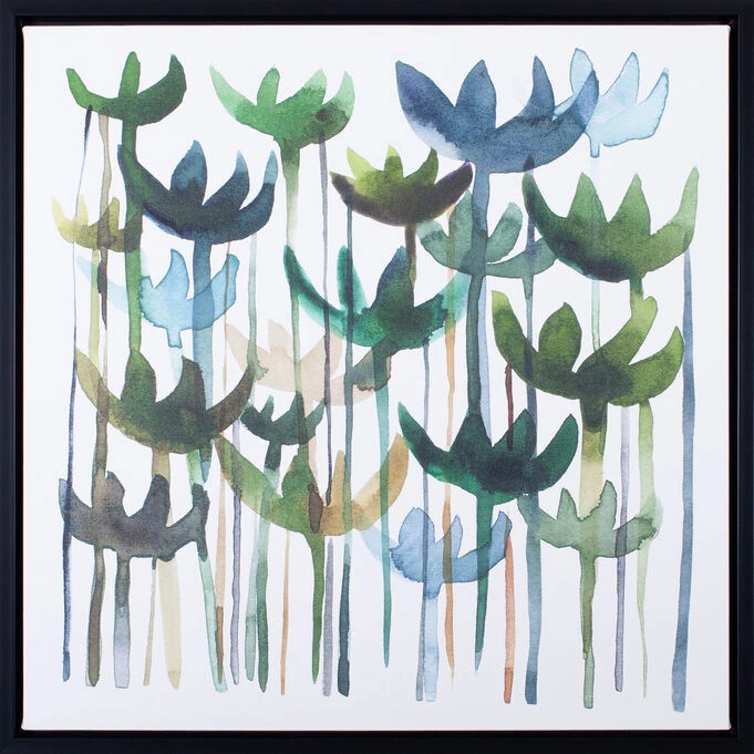 Artist Chariklia Zarris presents her Green Garden large wall art design, as featured in the Catalog Collection by Art Effects. Zarris’ colorful flower painting includes various blue and green tones, which are presented on a large canvas measuring 33” x 33”. Weighing 15 lbs., this square design is placed within a resin frame, and comes assembled with the components necessary to hang from the wall upon purchase. The frame’s quality construction is dark in color, and provides added contrast to the vibrance of the subject matter in the image. Shop this and other large wall décor from Art Effects online with Slumberland now, or visit a nearby location to analyze other artwork options in person.