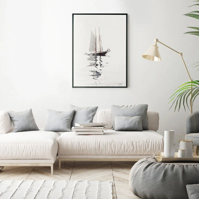 The Heartland Home Boat Shadow Wall Art is a unique and elegant piece of decoration to add to your home. This landscape art narrowly depicts a body of water and a sailboat on it, which is reflected in the water. This refined piece of art will signal to any guests in your home that your home is a chic one in which art is appreciated. Hang it in your living room or in a hallway to display. This painting adds a touch of culture to any home it is placed in, and it is suitable for just about any type of home dΓ©cor, so get one now!
