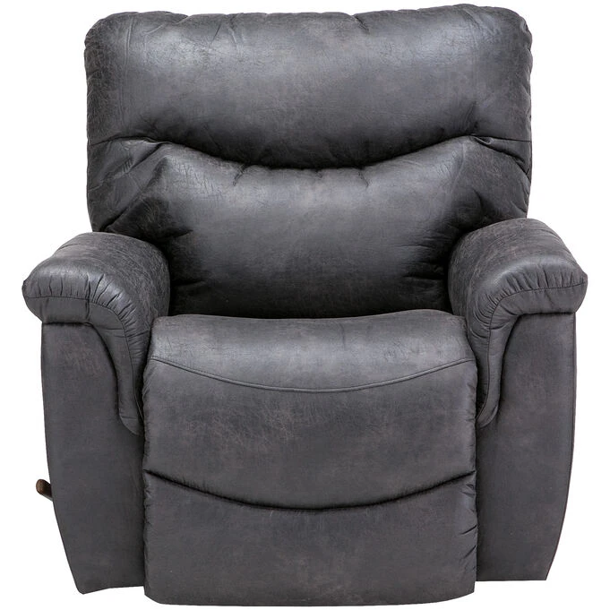 Complement your dΓ©cor and please your family with the La-Z-Boy James rocker recliner. This chair features a heavy-duty steel reclining mechanism and a comfortable chaise leg rest that supports your whole leg without gaps. The recliner is covered in a sophisticated leather look upholstery for softness next to your skin. James sets a casual but distinguished tone, with its bucket seating, sinuous spring construction, stitched pillow back and pillow top arms.