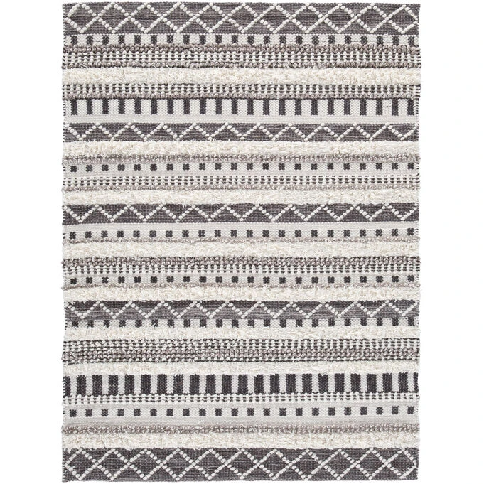 With its tribal design and neutral color palette, this handwoven wool rug makes the perfect addition to your entryway, living room, den, bedroom, or home office. 12mm pile. Backed with cotton. Spot clean only. Rug pad recommended.