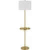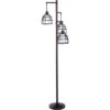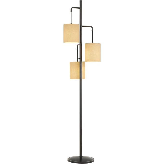This fun and durable metal floor lamp boasts a downlight lantern design and two linen lamp shades. Great for the den, living room, or office.