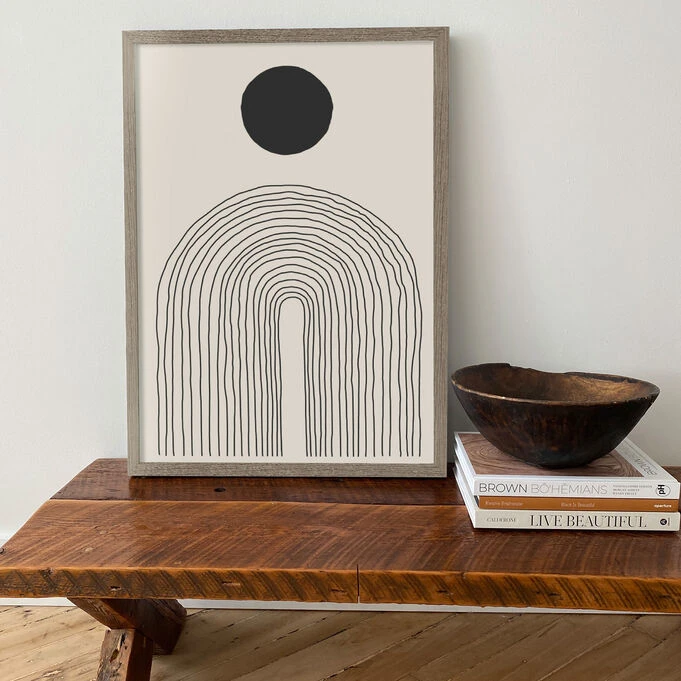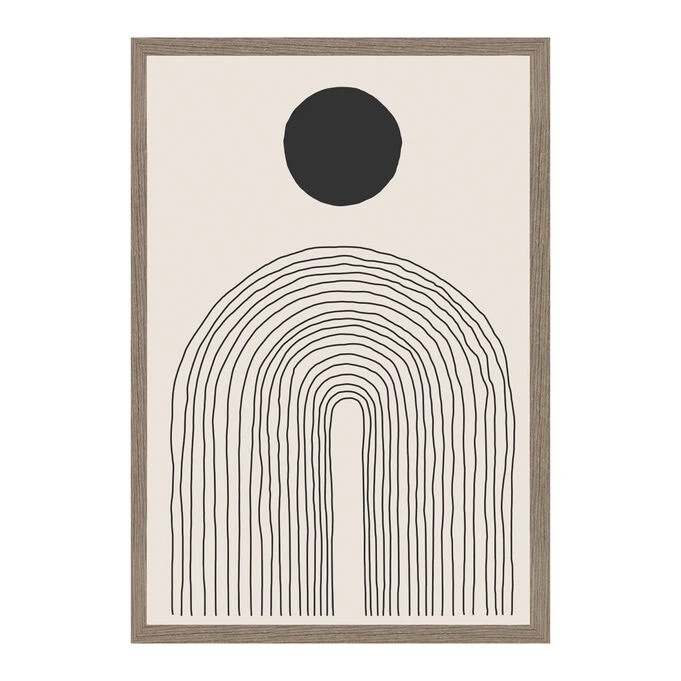Brought to us from the Northwood Collection as part of their Lunar series, the Lunar III Wall Art displays a single black orb floating over a rainbow of curbed black lines. Often displayed with other pieces from the same collection, the Lunar III Wall Art has neutral tones that match the other Lunar pieces, comes in a museum-quality frame, and is ready to hang. If you have a strong affinity for celestial bodies, you have to see the Northwood Collection Lunar series at Slumberland Furniture. Stop in today and see our vast array of wall art and other decorative items.