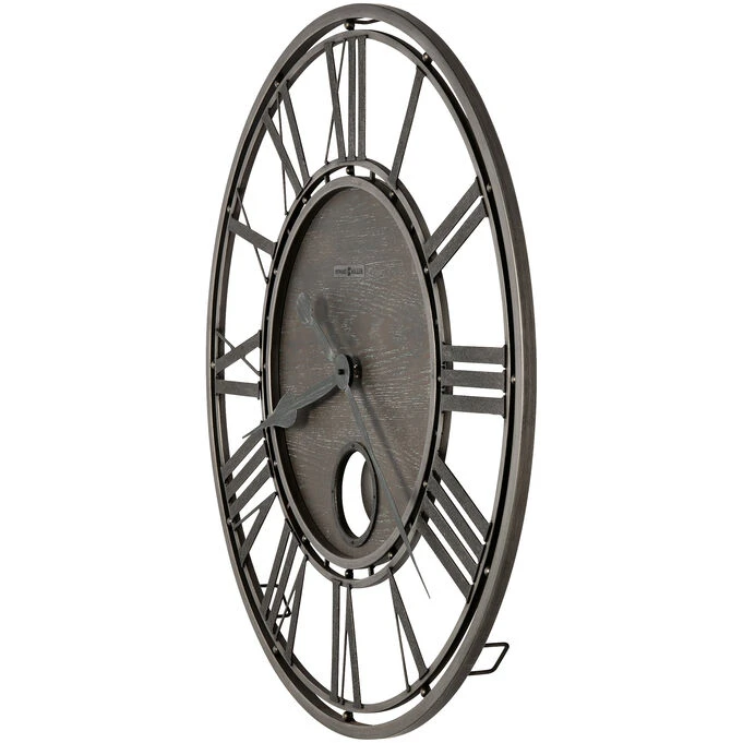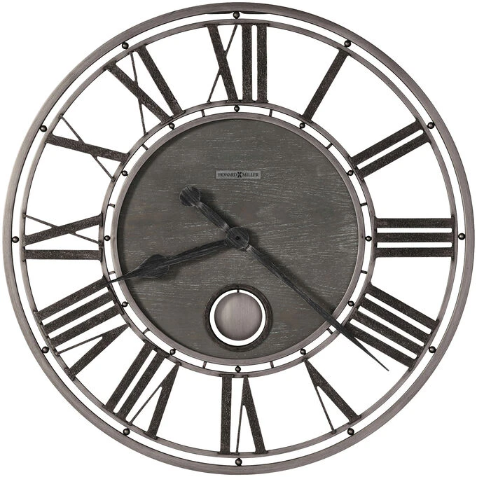 The Marius Wall Clock is a bold statement piece with a textured charcoal finish, an aged silver pendulum, and quiet battery-operated movement. The black hour and minute hands subtly blend with the aged charcoal finish, but also clearly point to the Roman numerals. The distressed gray finish makes this the perfect complement for modern or contemporary design. The Marius Wall Clock is the cure for the boring wall and you can see it in person at Slumberland Furniture or order yours online today. Battery not included.