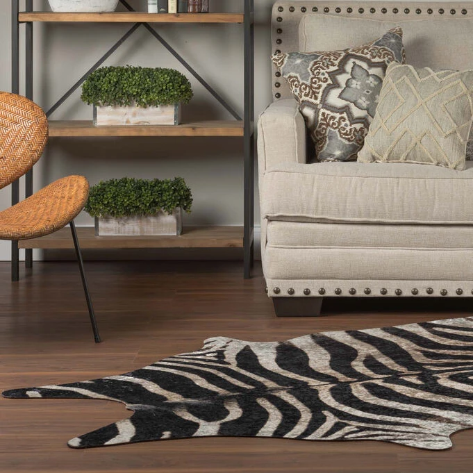 Montana Black Rug is an artfully crafted faux animal floor covering that adds a rustic charm to even the chicest of décor. Its low profile, lustrous, polyester pile and non-skid backing are easy to clean and maintain. Its machine-woven construction will give you many years of decorating beauty. Its designer-inspired color and polyester material will enhance the decor of any living room, bedroom, guest room, entryway or home office. The rug has a personality of its own that paired with a complimentary color scheme can turn any house into an inviting home. Bring the Montana Black Rug home today to give your home décor a creative twist.