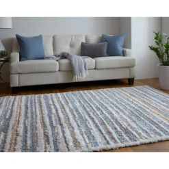 Step into a world of captivating design with the Mynka collection by Feizy. This multicolor area rug features three abstract patterns that will infuse your living or work space with artistic flair. The charmingly abstract motifs combine geometric lines, stunning curvature, and symmetrical patterns for a visually striking effect. Cool hues of blue and gray are enlivened by pops of orange and pink, creating a vibrant and dynamic color palette. Crafted with a plush shag pile, each rug offers a luxurious feel underfoot. Made with 100% polyester in Turkey, this machine-made collection is not only fade-resistant but also pet and child-friendly. With its water-resistant properties, the Mynka collection is a perfect blend of style and practicality.