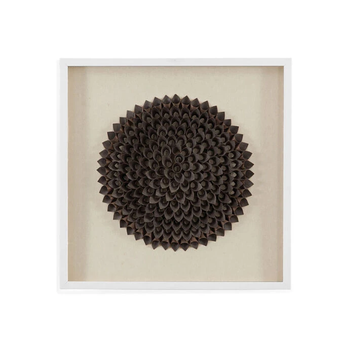 Featuring a floral pattern made of rolled cutouts of natural fibers, Nature Wall Art brings a touch of whimsy into your home dΓ©cor. The three-dimensional floral pattern is inset in a white shadow box frame accentuated with a linen-like oatmeal-colored mat. The natural materials mimicking a natural shape give the space an organic look and feel. The neutral colors go with any color scheme and add visual interest and texture to the space. This Nature Wall Art is ideal as part of a gallery wall or adorning a small reading nook. This piece of art is hand crafted by a skilled artist using a unique technique, so each piece will vary slightly.