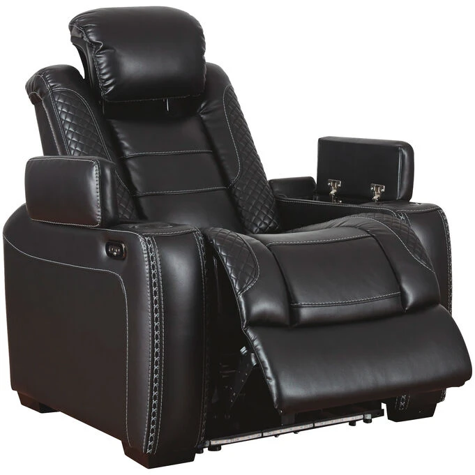 This power recliner takes its cue from luxury automobiles with lattice- and cross-hatch stitching, for a richly tailored aesthetic that gives you plenty of reasons to celebrate. Sumptuously padded cushions and buttery faux leather upholstery add to the indulgence. When it’s time to rev up the action, the reclining bucket seat, Easy View™ power adjustable headrest, LED accent lighting and USB charging port keep you in the driver’s seat.