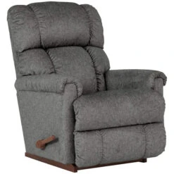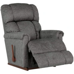 Sporting an easygoing style, the Pinnacle Rocking Recliner is just the right spot for rest and relaxation. Feel your body sink into the tall plush pillow back and padded rolled arms, reveling in extreme comfort. The chaise and leg rest combine to create a comfort zone that offers continuous relief. The convenient handle located on the outside arm lets you easily raise the leg rest for relaxing, reading and watching TV. Donβt feel like reclining? The chair turns into a comforting rocker with a gracefully smooth motion. Make the Pinnacle Rocker Recliner yours with different fabrics and other available upgrades.