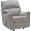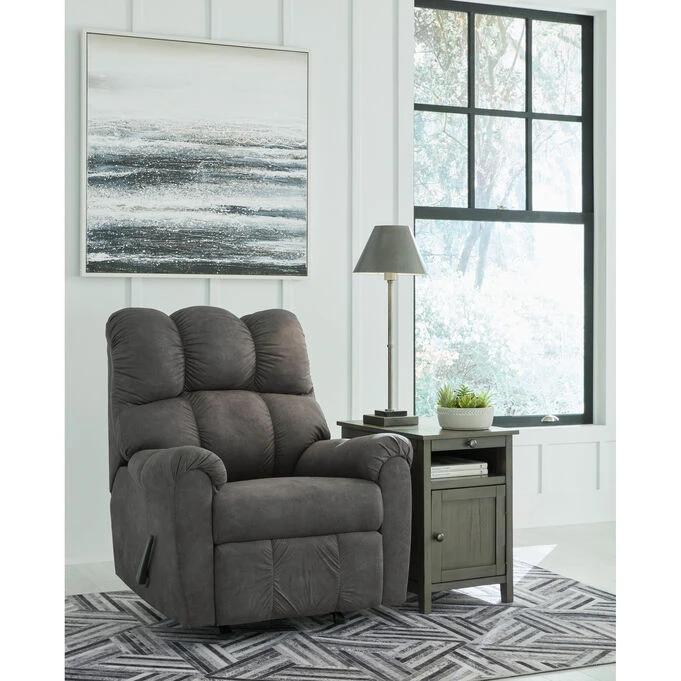 The Potrol Rocker Recliner is the perfect chair to relax and unwind in style. This rocker recliner indulges you in supreme comfort, conjuring images of a restful retreat thatβs all yours. Accessibly neutral leather look fabric encourages luxurious lounging, and the one-pull reclining mechanism assists in ushering hours of simply stylish bliss. The pillow top arms and tight back add style and support. Its transitional style and neutral gray color complement a variety of design styles, making it a versatile addition to any home. Whether watching your favorite TV show, reading or taking a nap, the Potrol Rocker Recliner is the ideal option for your home.