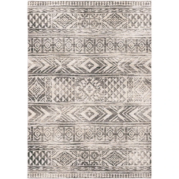 With swaths of patterns inspired by pre-colonial kingdoms, the Kuba Delight area rug is a must for those who seek flair. The ivory patterning sits atop a charcoal canvas to create striking contrast. Add this stylish statement rug to any room that needs a fresh, fashionable feel.