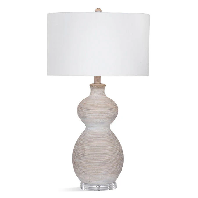 Light up your home with the Sandy Table Lamp. The lamp is crafted of ceramic with a clear acrylic base and a white linen drum shade. The handcrafted details a skilled artist produces lend themselves to a unique technique and will vary slightly. The white-washed, beige ceramic lamp and horizontal texturing work well in boho, eclectic and transitional styling—the felt-lined, drum-shaped, white linen shade throughs soft lighting throughout the space. The Sandy Table Lamp’s curvy silhouette and neutral colors work well with any color scheme. The lamp can be used on an end table in the living room or as a bedside table in the primary or guest bedroom.