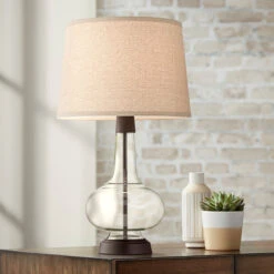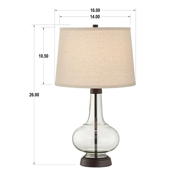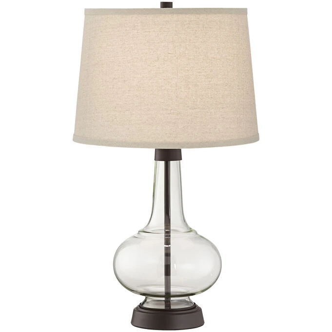 The right lighting plays an important role in any décor, defining space and creating ambiance and drama. With subtle hints of industrial style, the stunning Silas Clear Glass Table Lamp will enhance your home with a perfect mix of form and function. The lamp features a shapely glass silhouette with expertly applied handsome rubbed bronze finish accents. The textured oatmeal linen shade on top complements the beautiful design of this decorative lamp. Add visual interest to farmhouse, coastal, industrial, contemporary or transitional room décor with the Silas Clear Glass Table Lamp in your living room, bedroom, guest room or entryway.