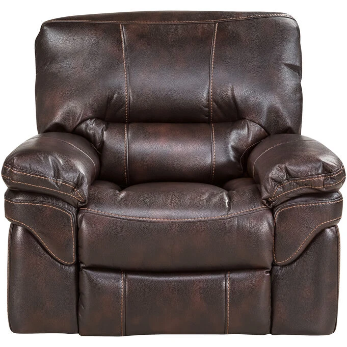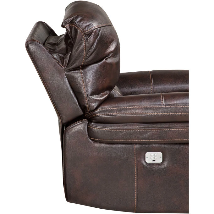 Get comfortable in the Valdez power headrest recliner. Whether you’re watching TV, relaxing with your laptop, reading, or just snoozing, this sumptuously padded recliner makes it easy, with smooth reclining action and a power headrest that adjusts to your liking at the touch of a button. Styled with a bustle back and well-padded arms, this leather-look chair is made of polyurethane/polypropylene, in a lightly marled finish accented with topstitched seams. Valdez is generously sized for universal comfort.