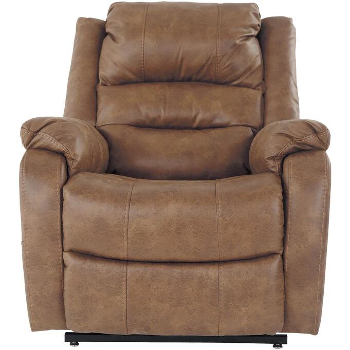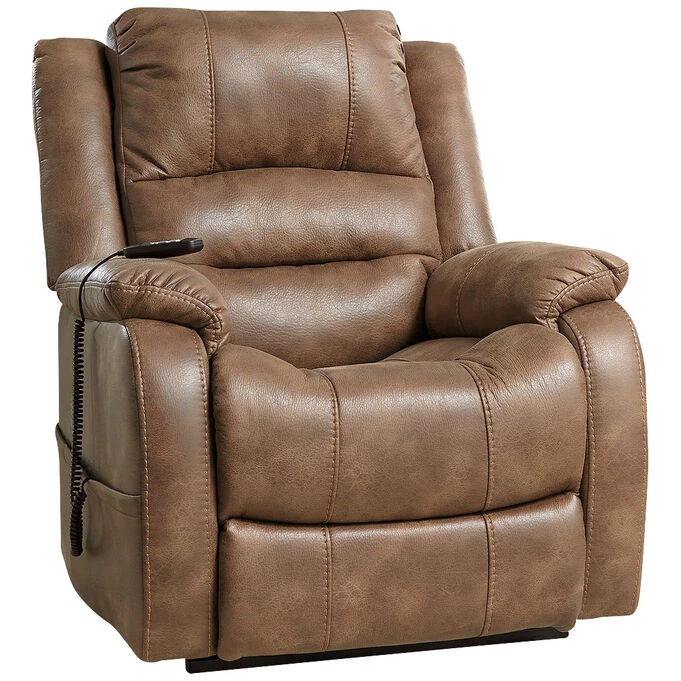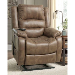 Double your pleasure and your sense of style with this power lift recliner. Dual motor capability gives you the freedom to recline back and elevate your legs independently for more custom comfort positioning. And with the touch of a button, power lift feature gently eases you from the ultimate slumber into a lift-and-tilt position to get you back on your feet, effortlessly. Designer upholstery may look like gently battered leather, but itβs actually a feel-good fabric with warm, cozy appeal. – Product Details provided by Manufacturer, Slumberland not responsible for errors in information.